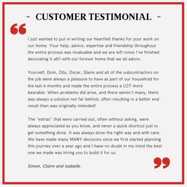 “Friendly, reliable, experienced builder who produces great work. Good value for money”